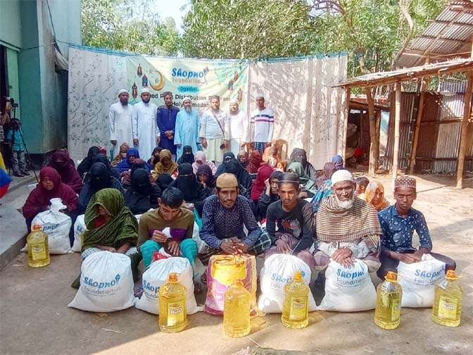 দুর্দশাগ্রস্ত জনগণের জন্য খাদ্য সামগ্রী বিতরণ।